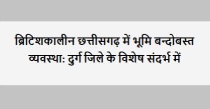 Cite: राय एवं पॉल (2016). ब्रिटिशकालीन छत्तीसगढ़ में भूमि बन्दोबस्त व्यवस्था: दुर्ग जिले के विशेष संदर्भ में. Journal of Ravishankar University (Part-A: Science), 22(1), pp.99-105.